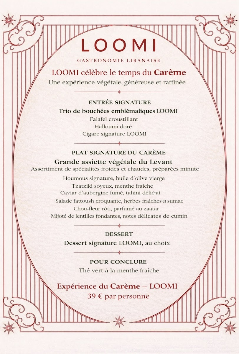 LOOMI GASTRONOMIE LIBANAISE invites you on a refined journey through authentic Lebanese and Mediterranean flavors in the heart of Levallois-Perret. This intimate restaurant blends traditional recipes with modern fine dining, offering exceptional dishes that burst with freshness and bold, balanced spices. The menu highlights a curated selection of meze, grilled delicacies, and signature citrus-infused cocktails, thoughtfully composed to delight every palate.